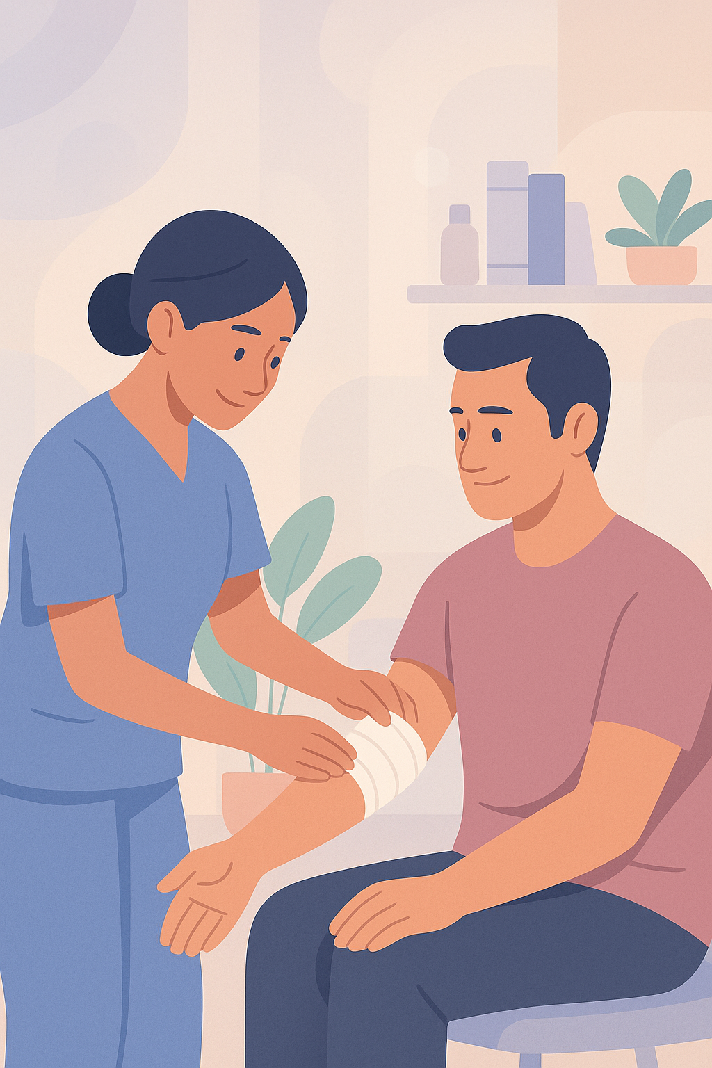 Prise en charge à domicile sur prescription médicale, avec une attention particulière portée à votre confort, votre rythme de vie et la coordination avec votre médecin.